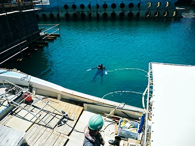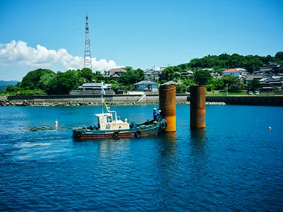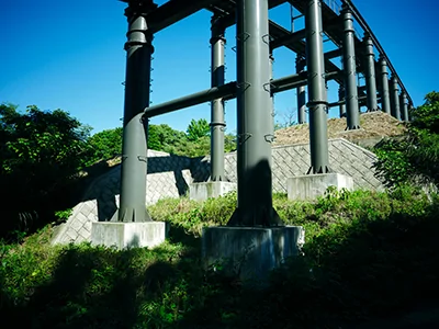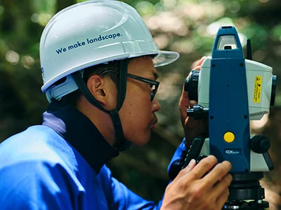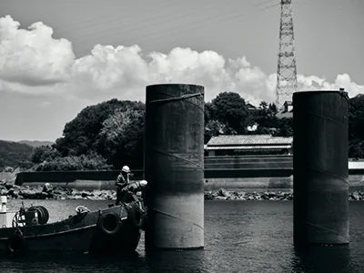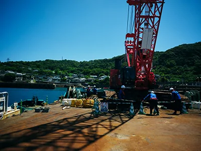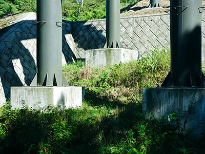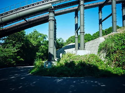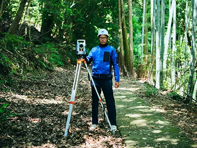 稲佐山の東側斜面に位置する紅葉谷川は、標高280mにその源があり、2級河川の浦上川に合流しています。紅葉谷川は流域面積0.1㎢と大きく、渓流勾配が1/5.7と急で土石流の発生の恐れが高いため、渓流谷出口に砂防堰堤を設置する必要がありました。工事期間中は安全対策に取り組むだけでなく、地域住民とのコミュニケーションもとりながら工事をすすめました。現場見学のイベントには多くの地域住民が参加。公共工事への理解を得ながら工事をすすめることができました。